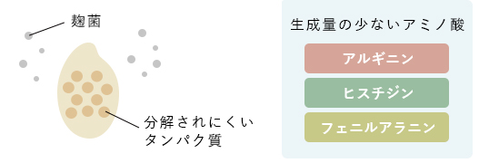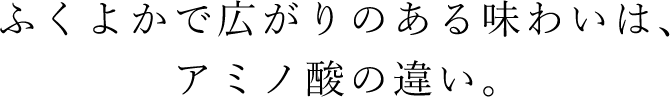 「山田錦」の持つタンパク質は、麹菌の持つ分解酵素では分解されにくいタンパク質が多く、分解されてできるアミノ酸の量が少ないのです。また、分解されてできるアミノ酸の種類もアルギニン、ヒスチジン、フェニルアラニンなどの苦味アミノ酸が少なく、他の酒造好適米(酒米)や一般米に比べ、ふくよかで広がりのある味わいに感じられます。